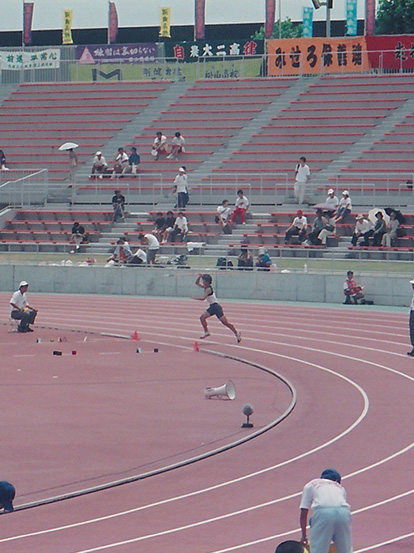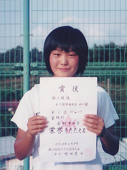 - 中学生時代には駅伝部に所属し、県大会4位。高校時代には陸上競技(やり投げ)にてインターハイ、国体出場。